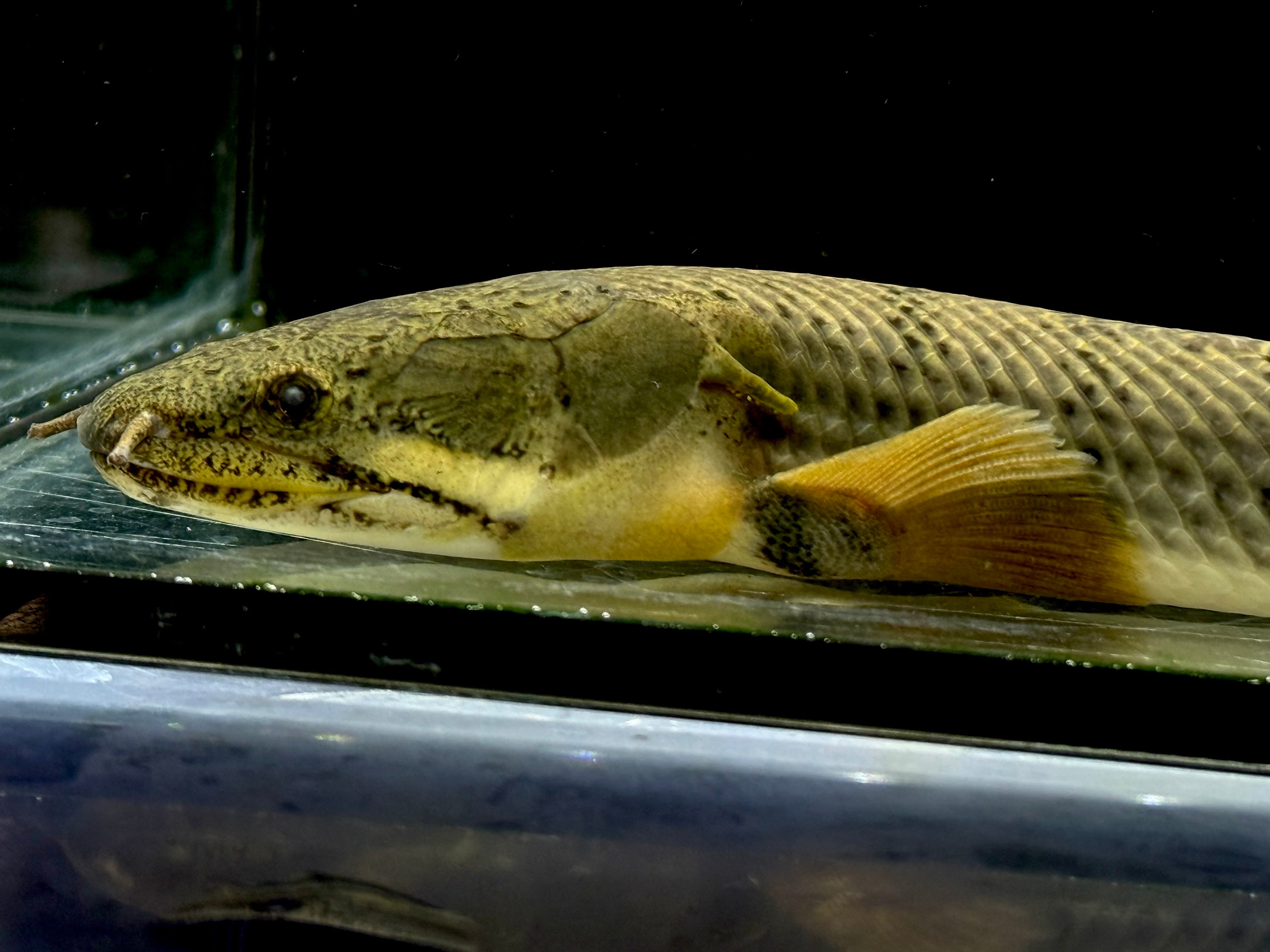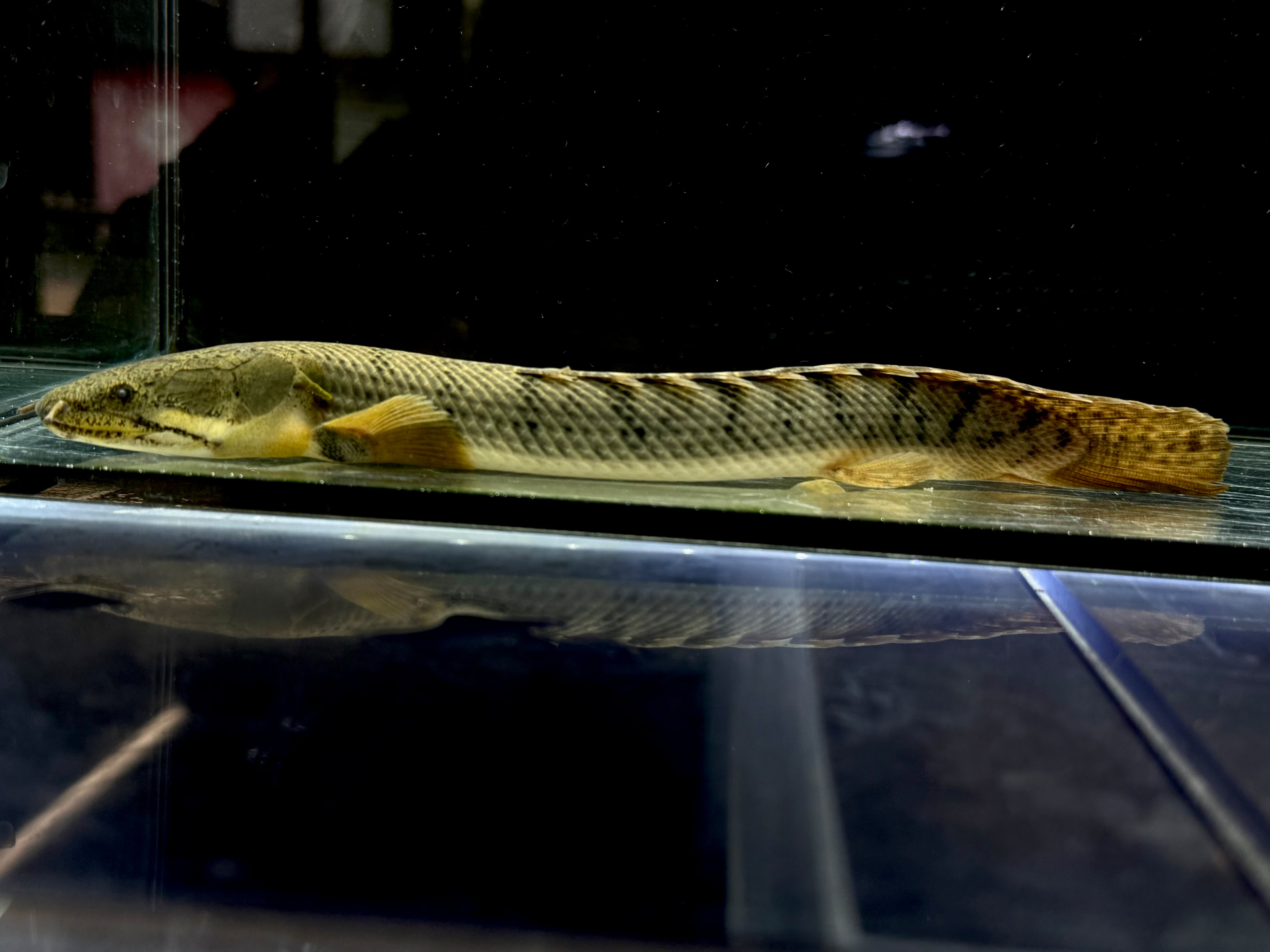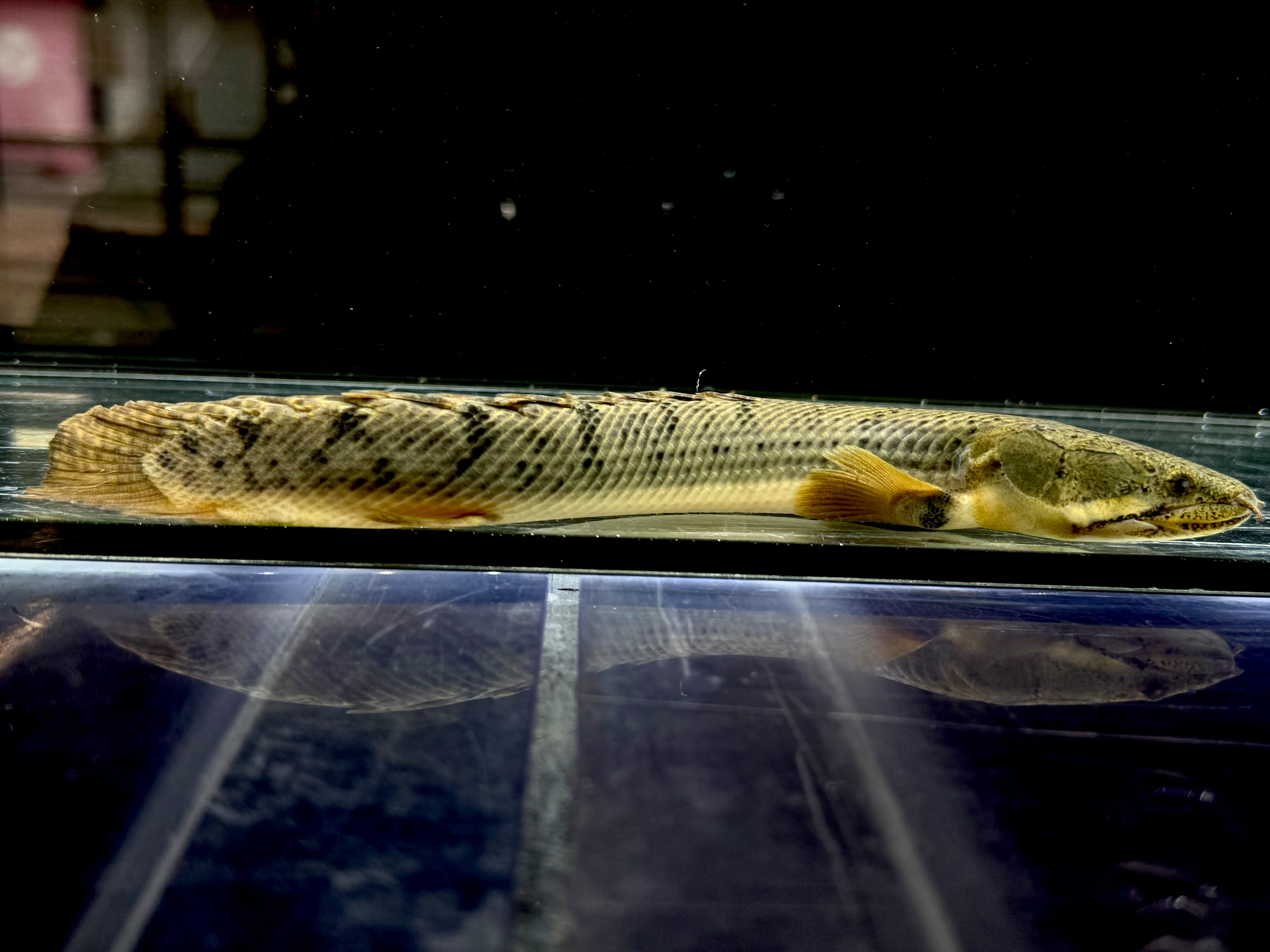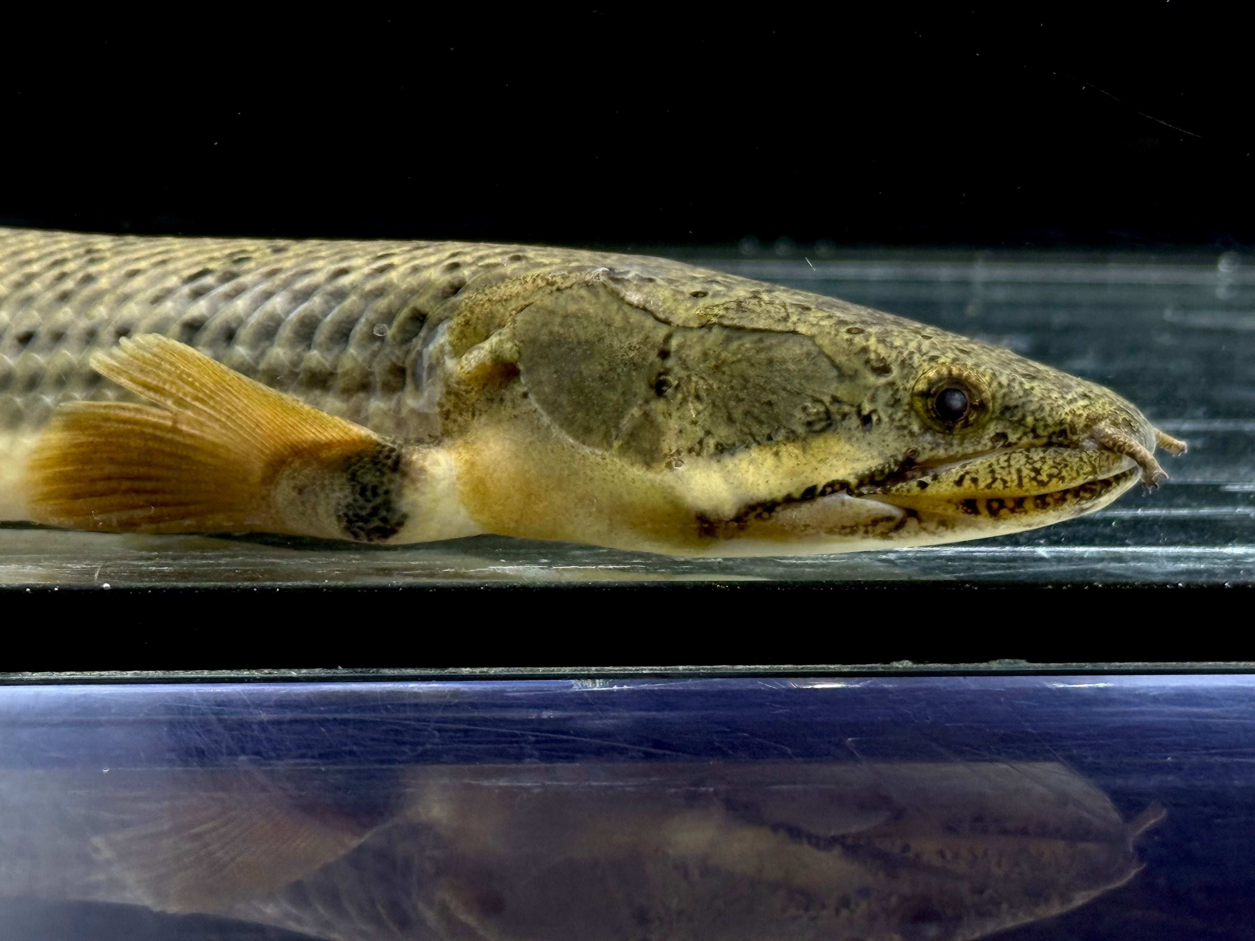 ⬛︎特徴: ポリプテルスは「多くの(Poly)ひれ(pterus)」という意味で、名のとおり背中に小離鰭(しょうりき)と呼ばれる菱形の背びれが10枚前後ある。これは、尾びれに当たる位置にまで並び、尾びれに該当する鰭はない。種類によって枚数異なる(ウィークシーは9~11枚並ぶのが特徴)またガノイン鱗や鼻管などもこの種の特徴。鰓呼吸と並行して空気呼吸をする。