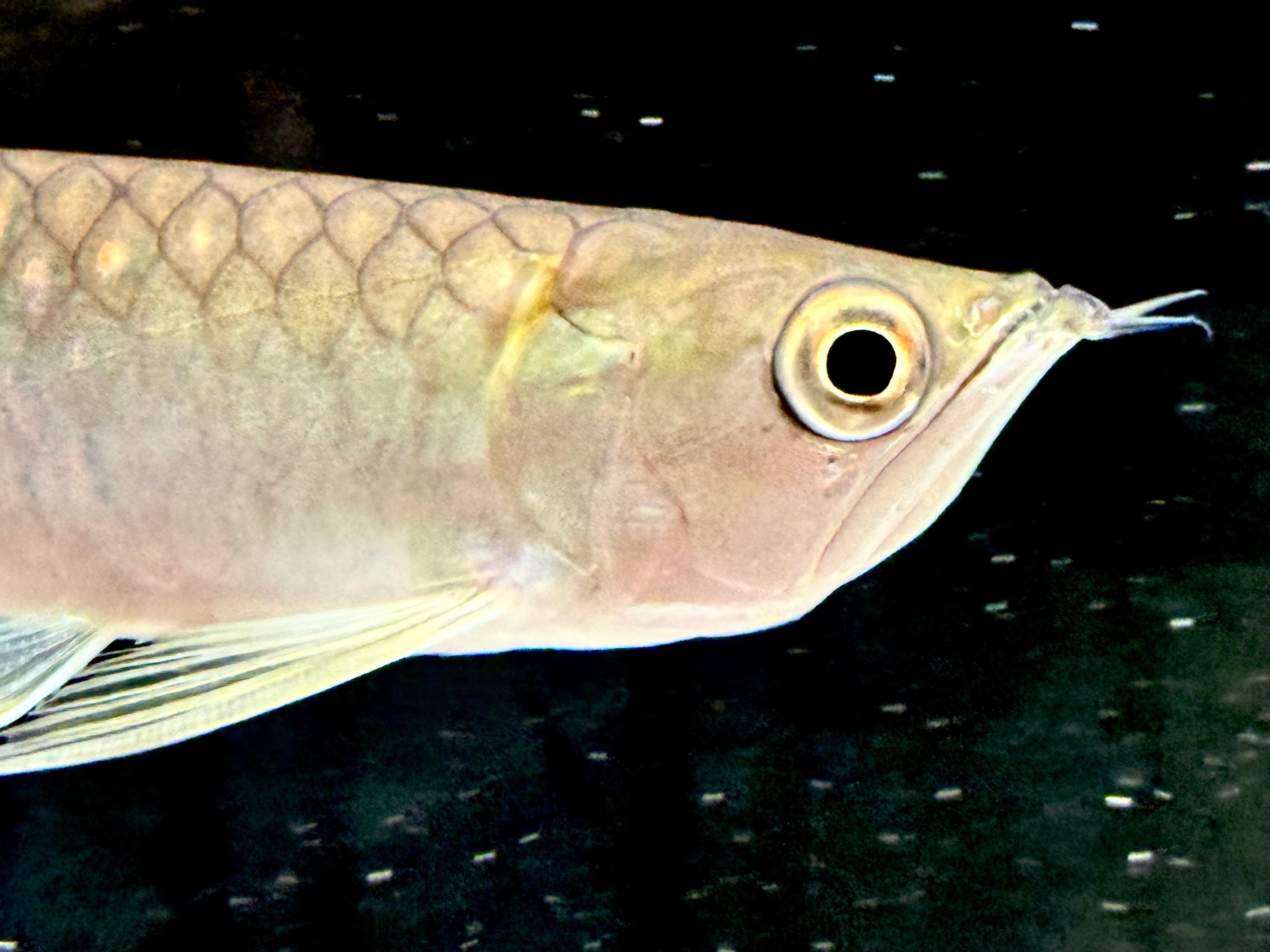 アロワナの中では飼育はデリケート。シルバーと比べて目垂れはおこしにくい。