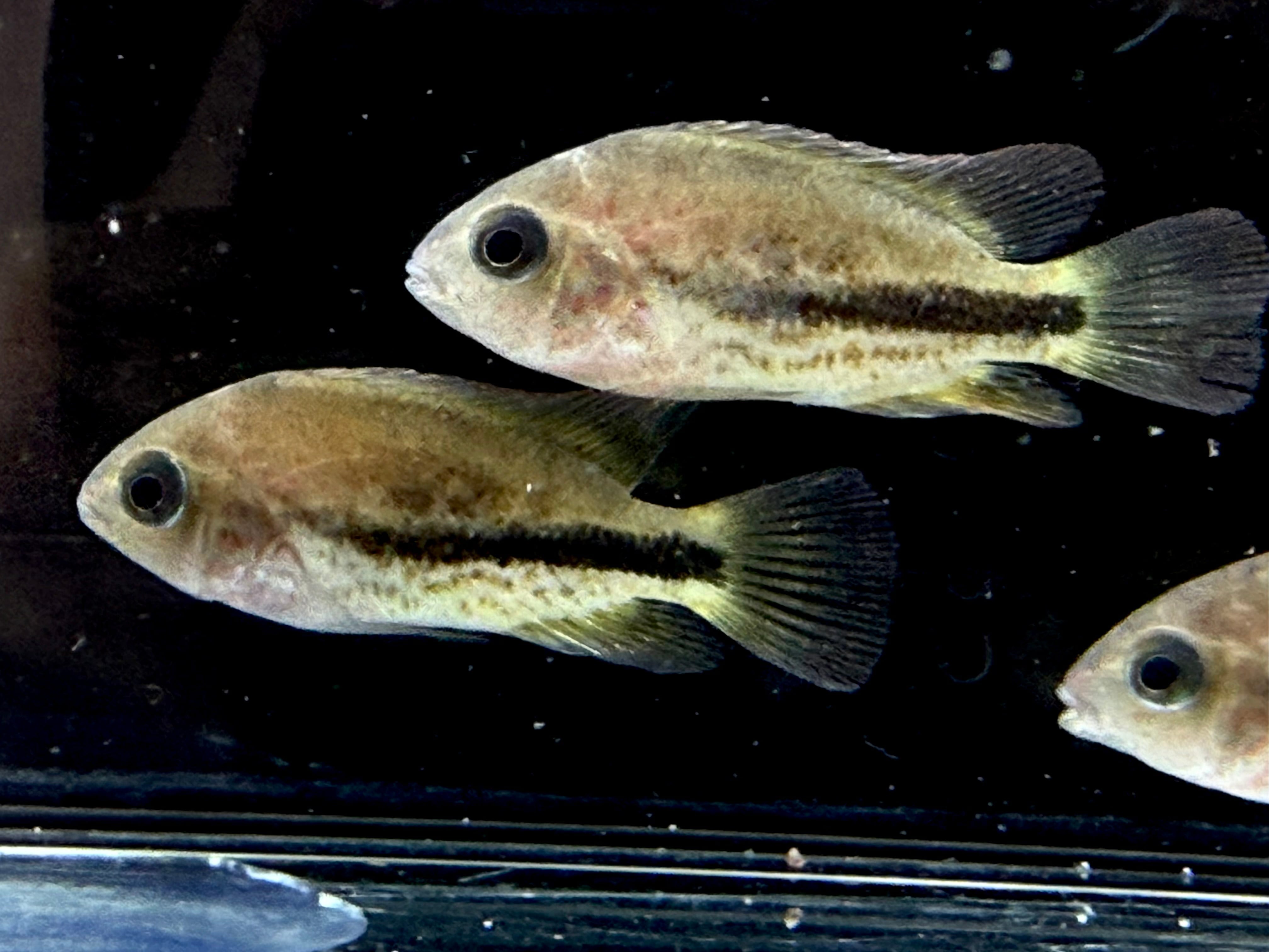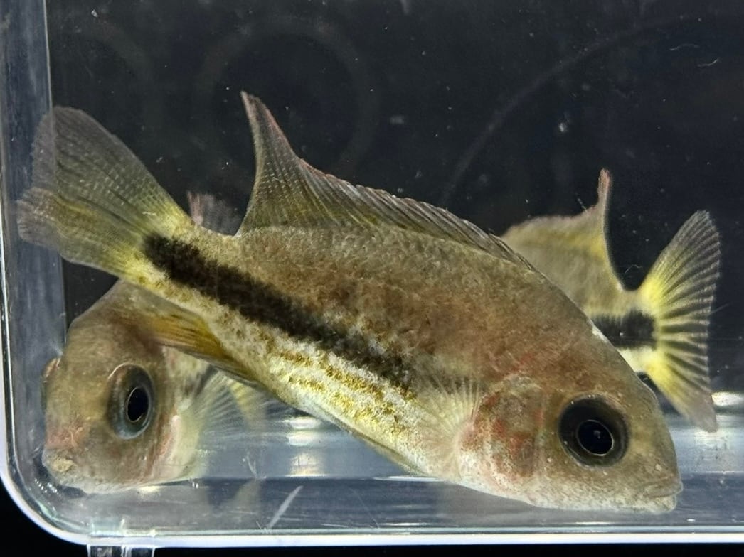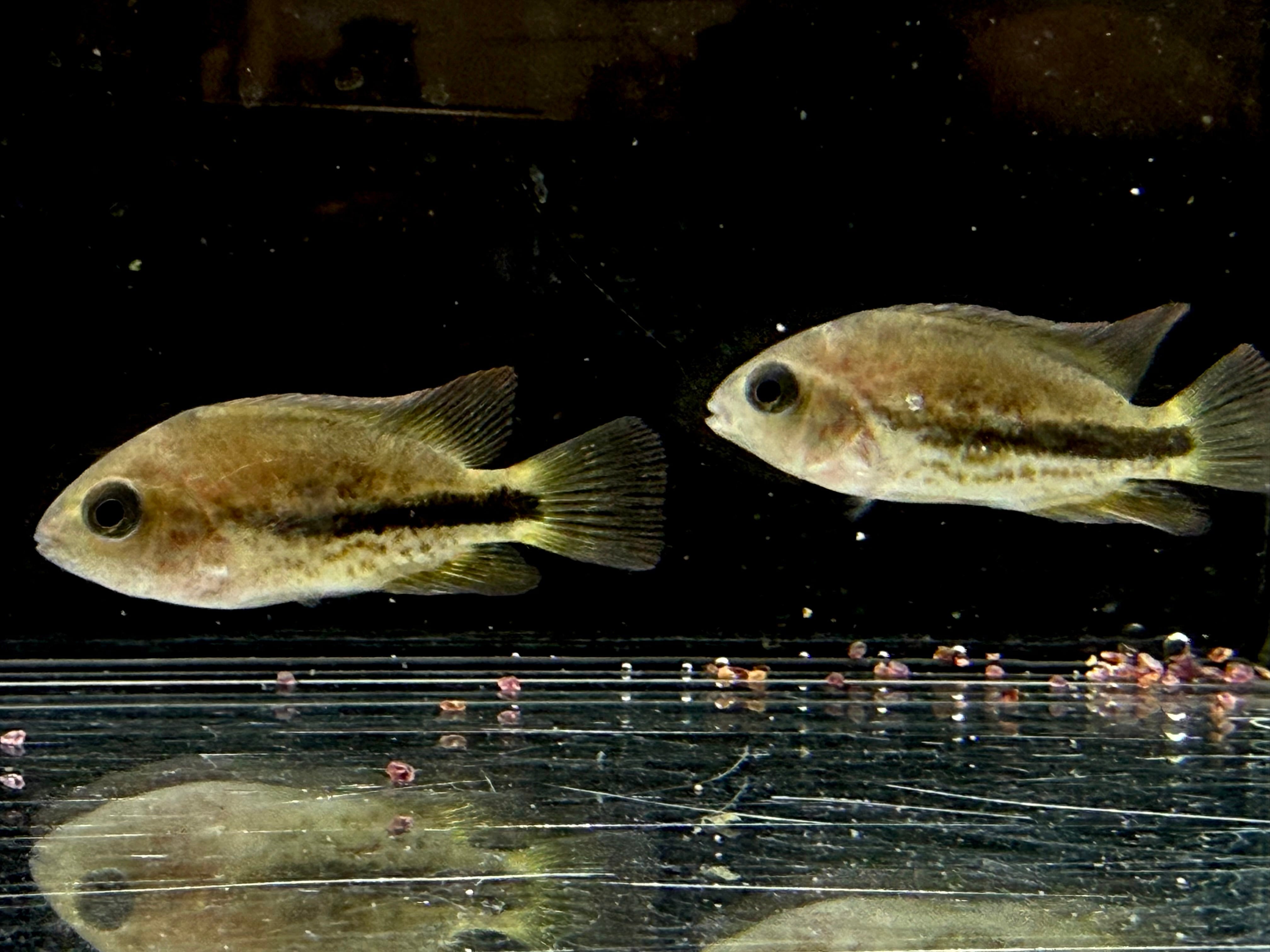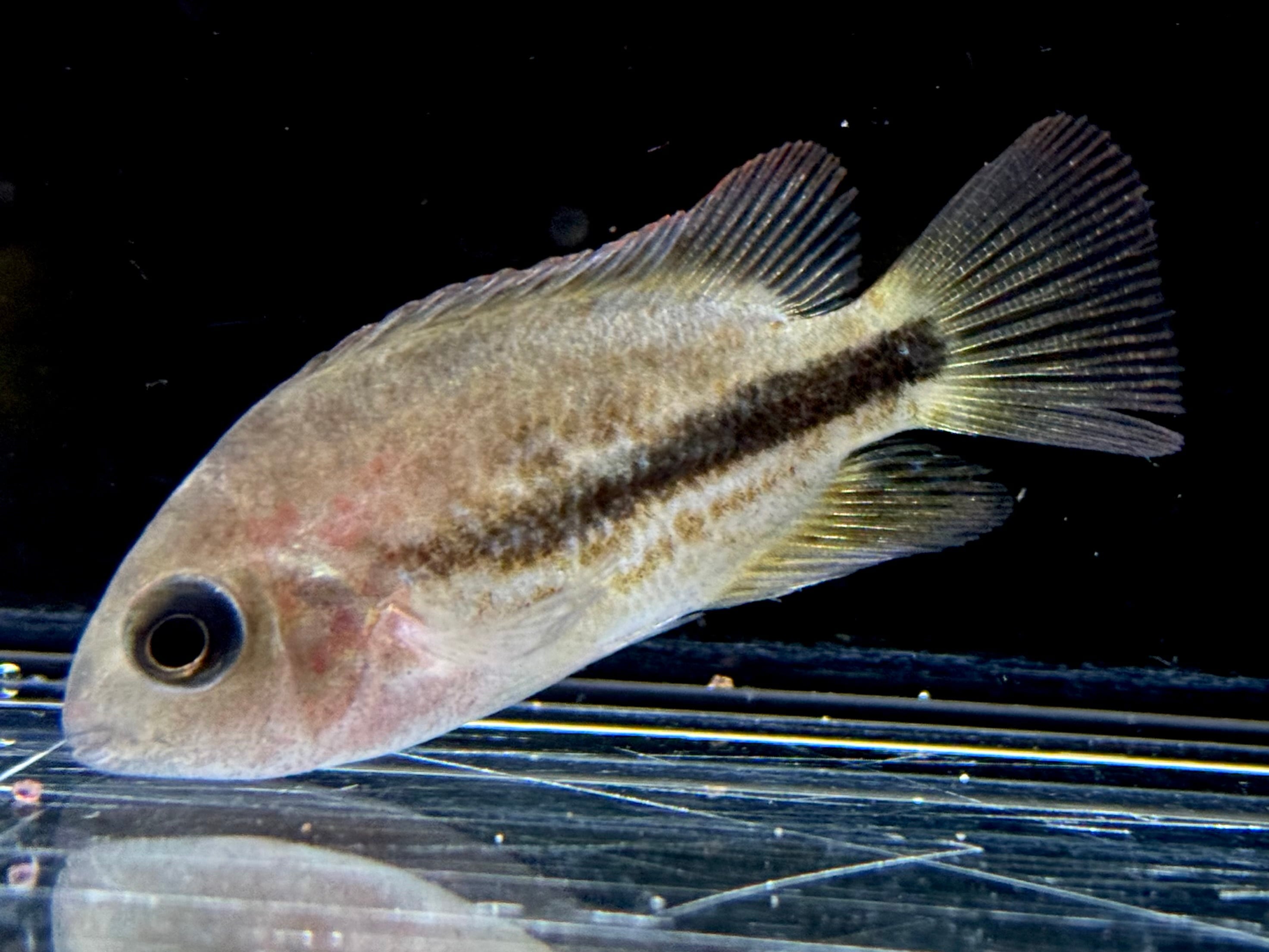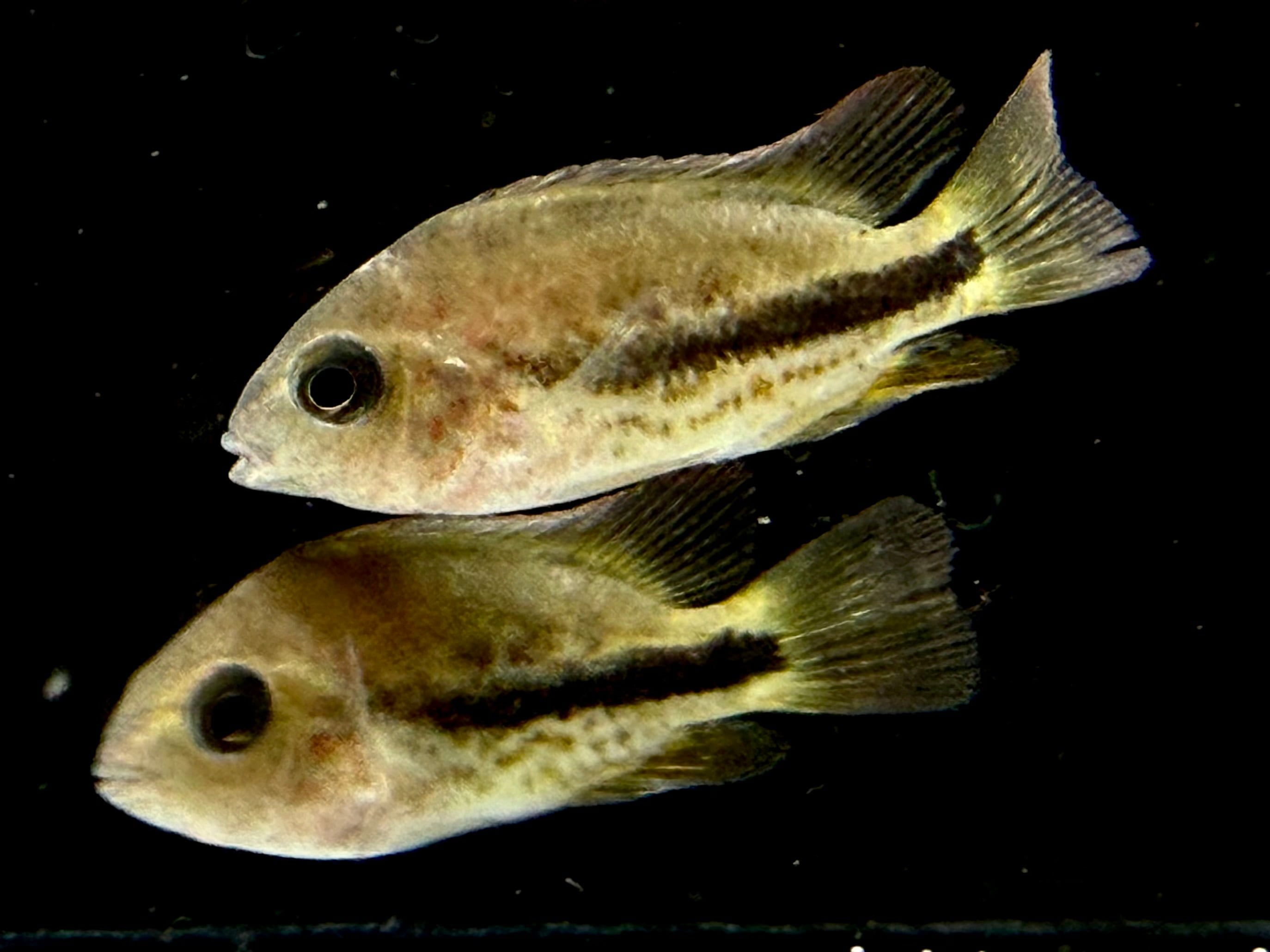幼魚の中は体色こそ地味めですがシクリッド好きにはかなりハマる個体かと。