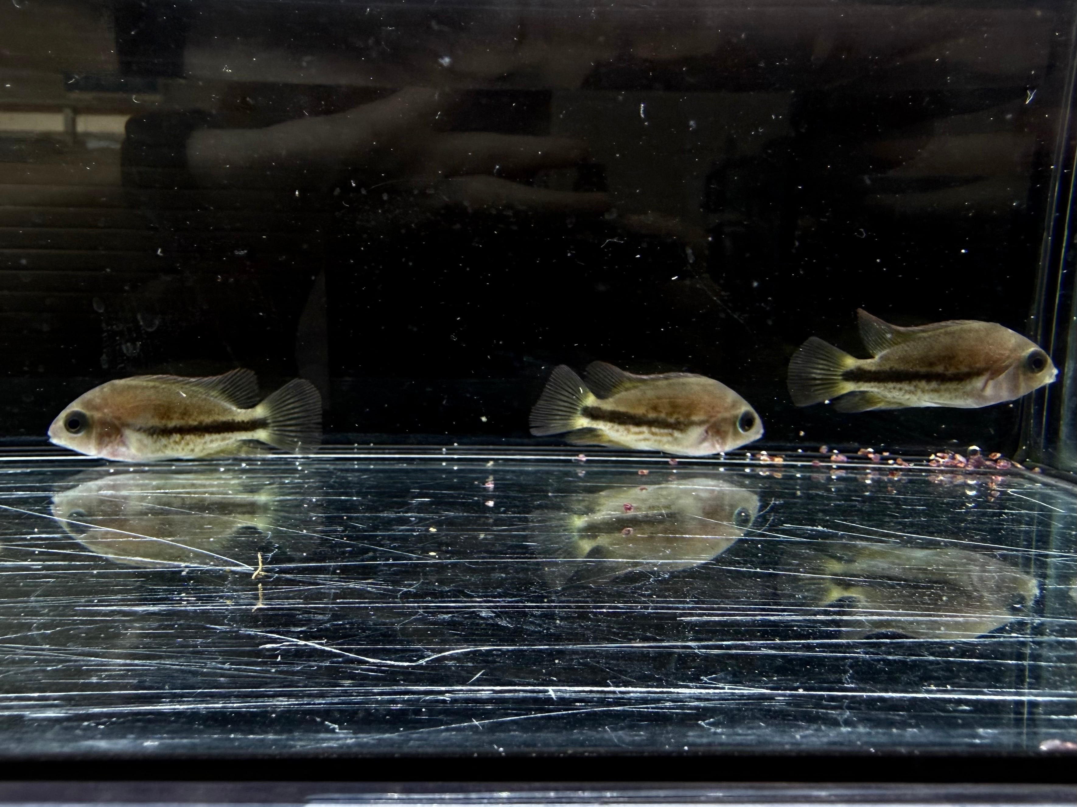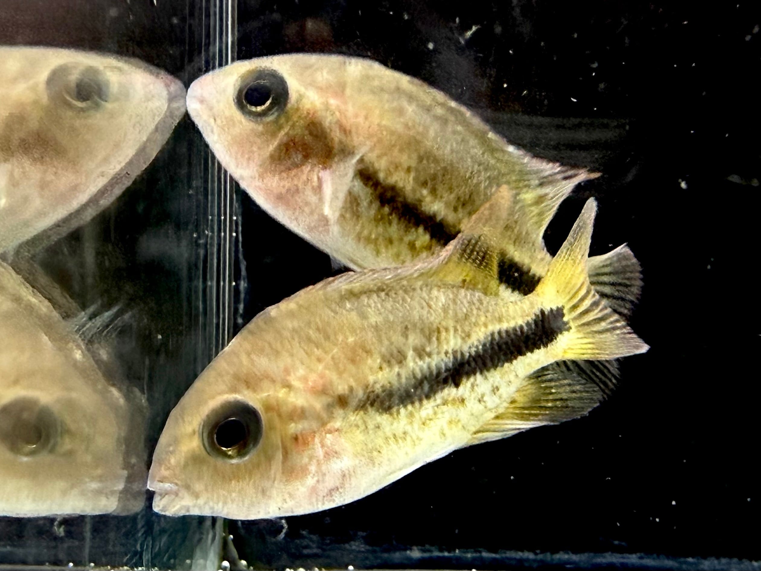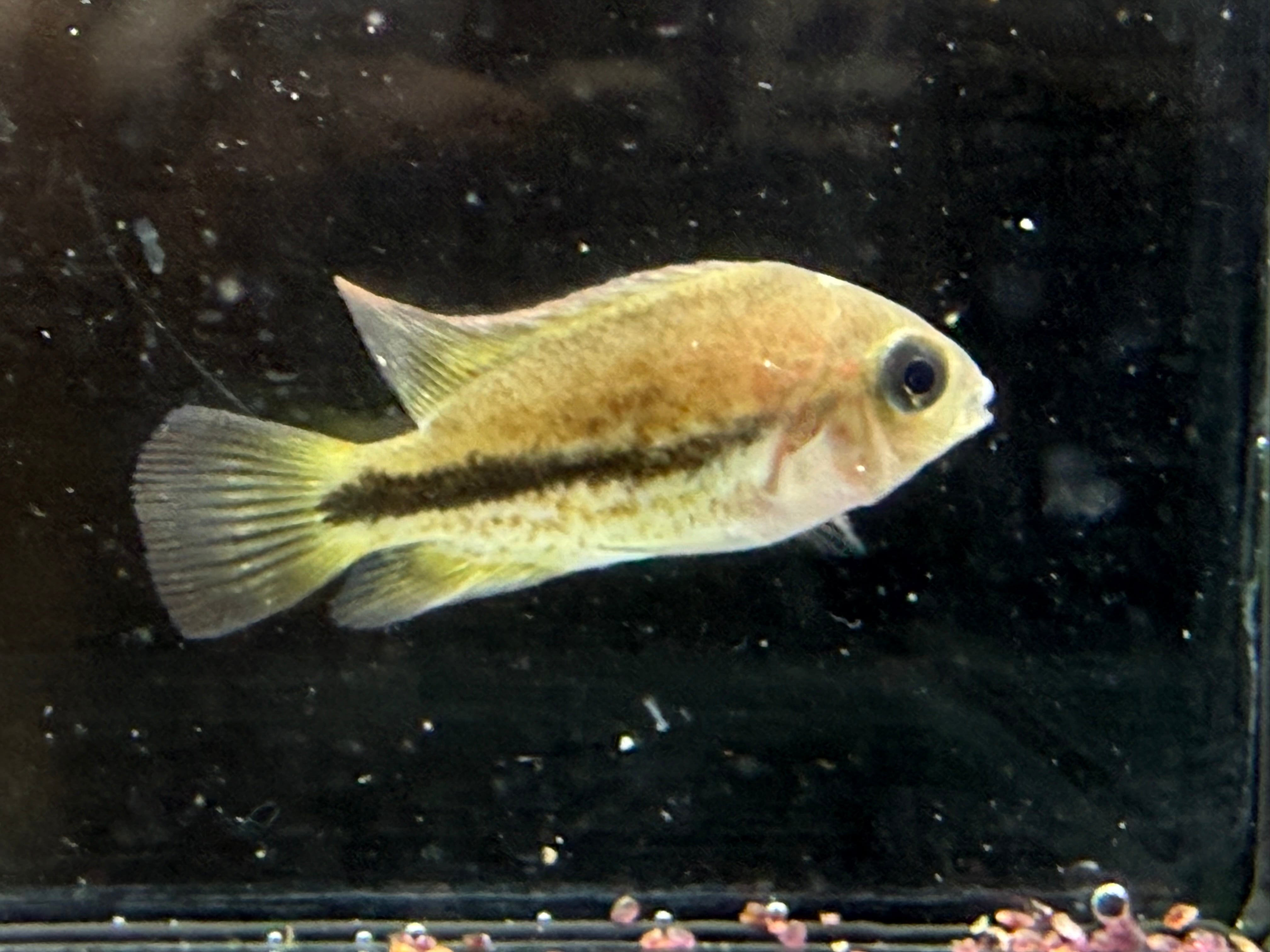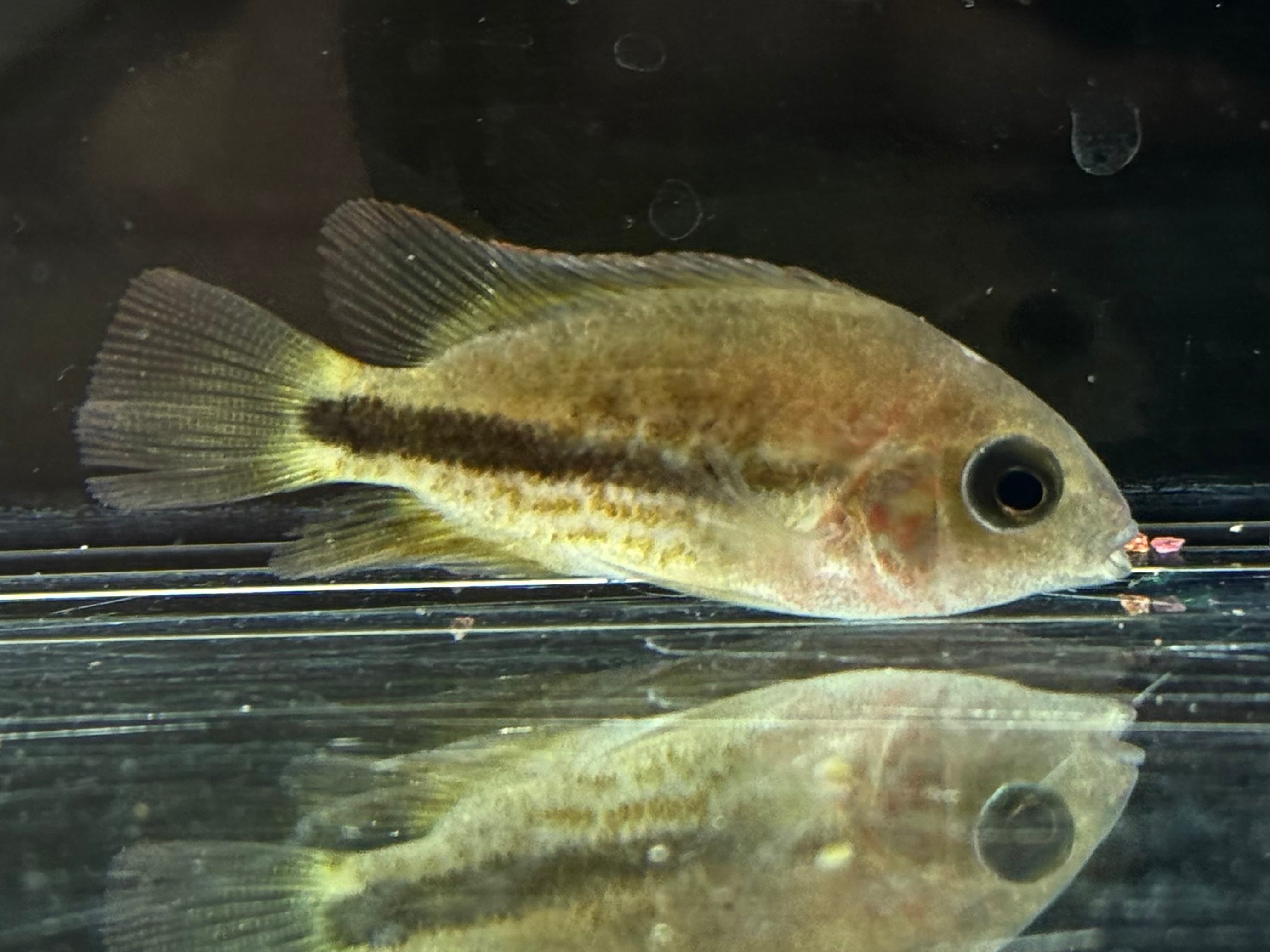 幼魚の中は体色こそ地味めですがシクリッド好きにはかなりハマる個体かと。