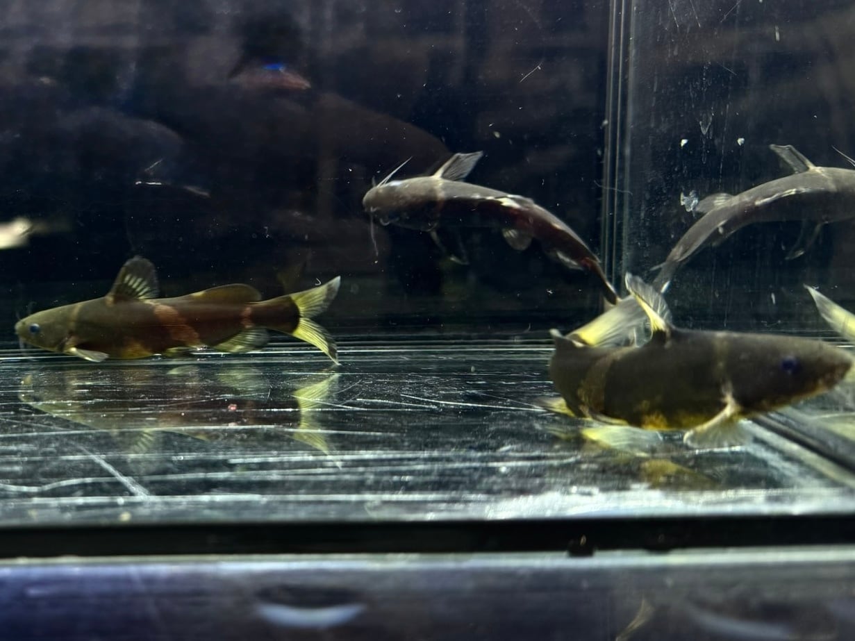 ⬛︎特徴:ギギ科ミスタスの仲間。 黄色×黒の縞模様が蜂(バンブルビー)のような体色をしておりコントラストが映えるタイ原産の小〜中型のナマズ。顔も体型もクマバチみたいで相当に可愛いと言えます。8本の髭を有している。加えてサメを彷彿とさせる体型で非常に人気も高い。