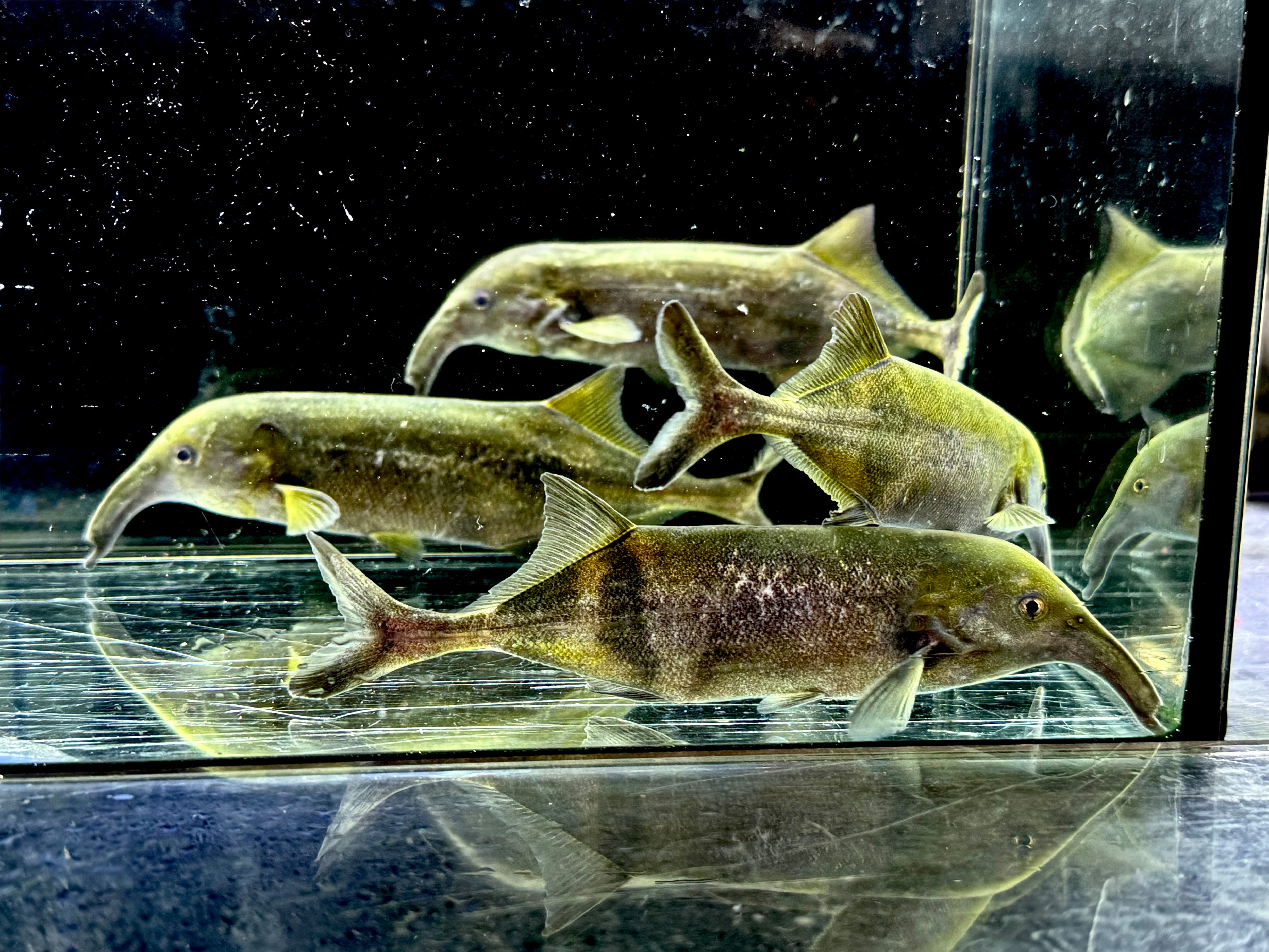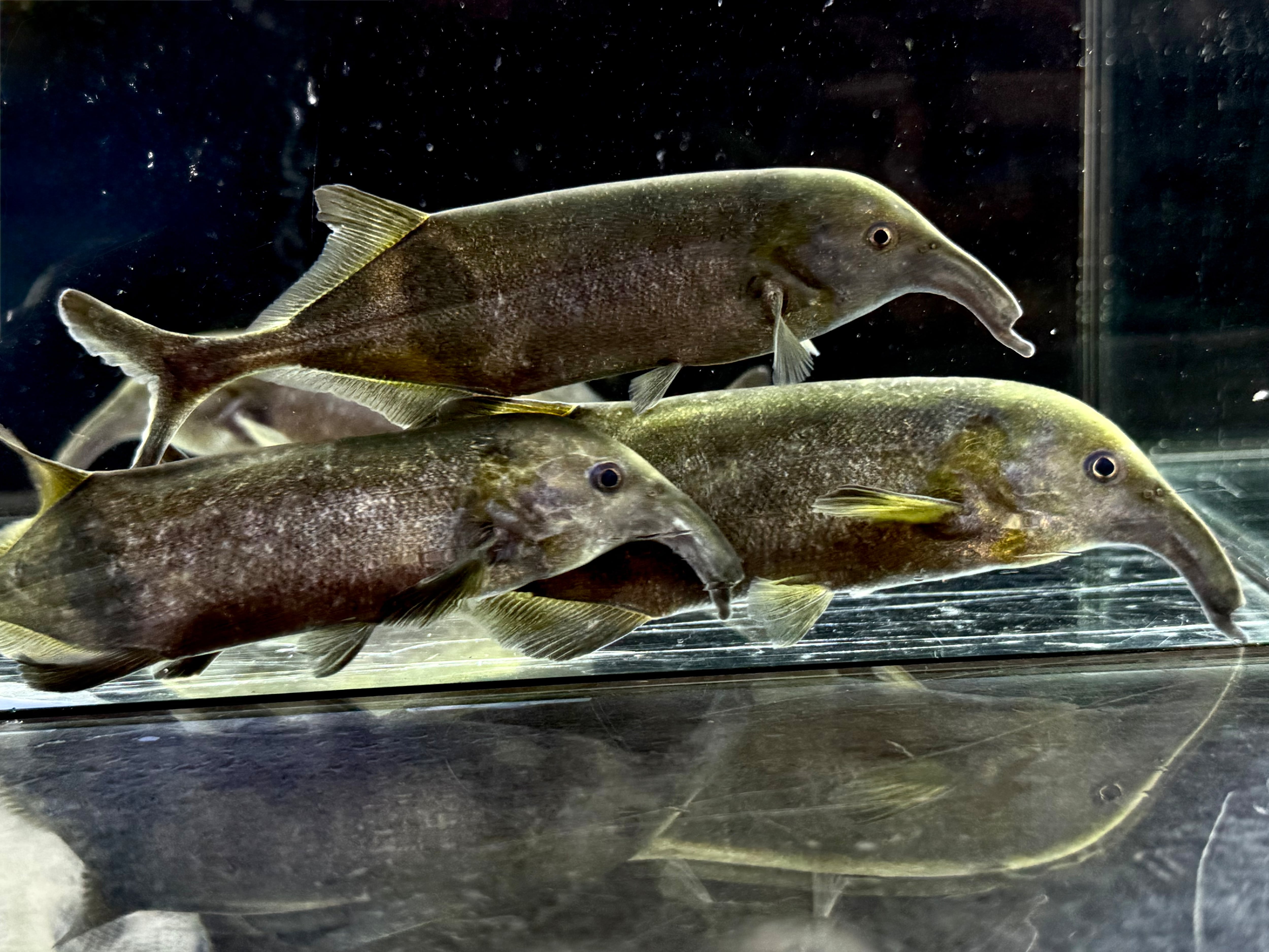 カンピロモルミルス類は頭が良いとされています。その名の通り象のような鼻に見える顎を持つ事が特徴。顎の象鼻に見える部位をピロピロと動かしエサを探すのですが〝地雷探知機〟ならぬ〝エサ探知機〟を担っている機関といえるでしょう。目が悪いので微弱な電気を発している事も分かっています。これをレーダーのように使用しているんですね。これが顎…本当に不思議です。