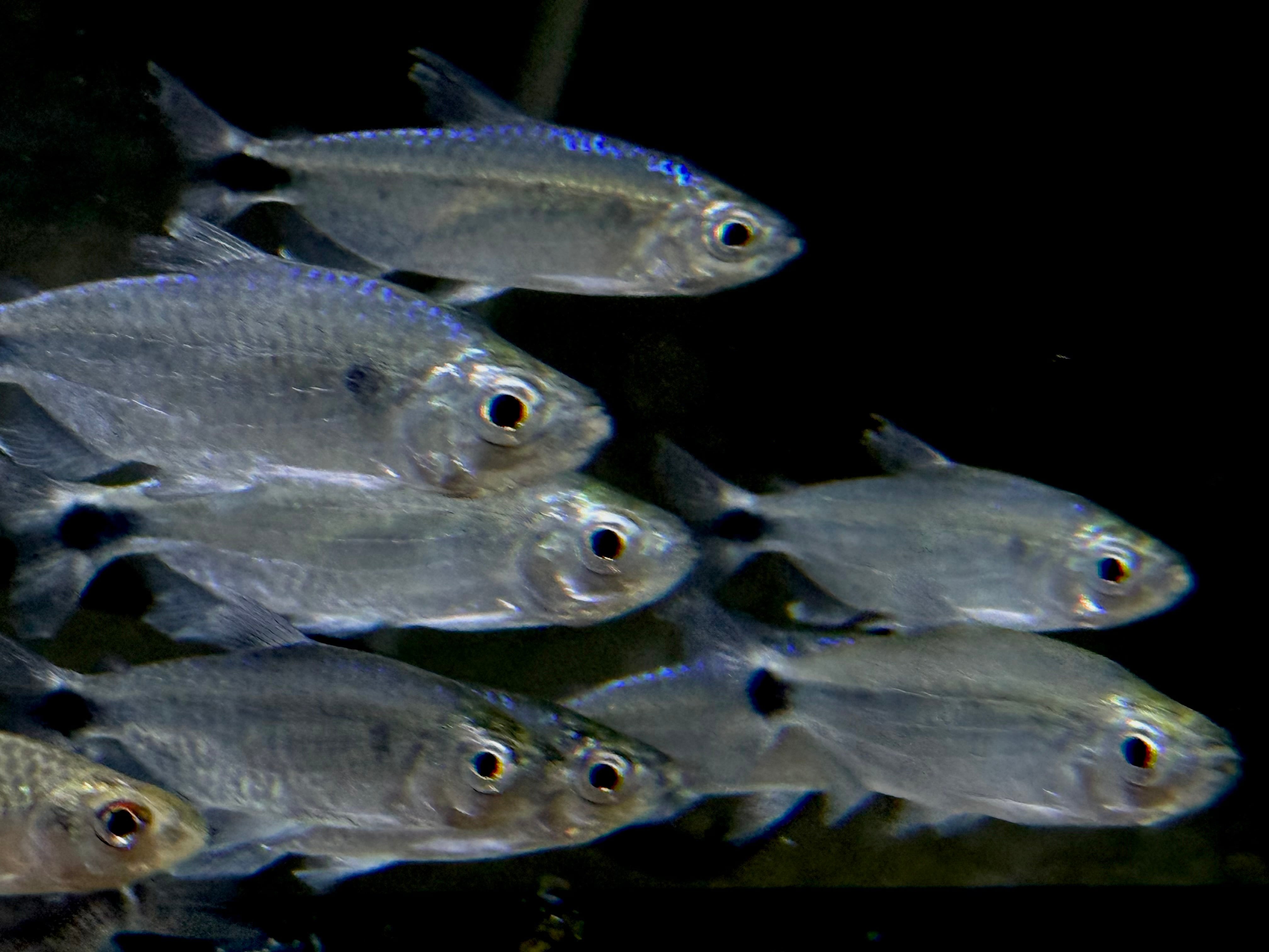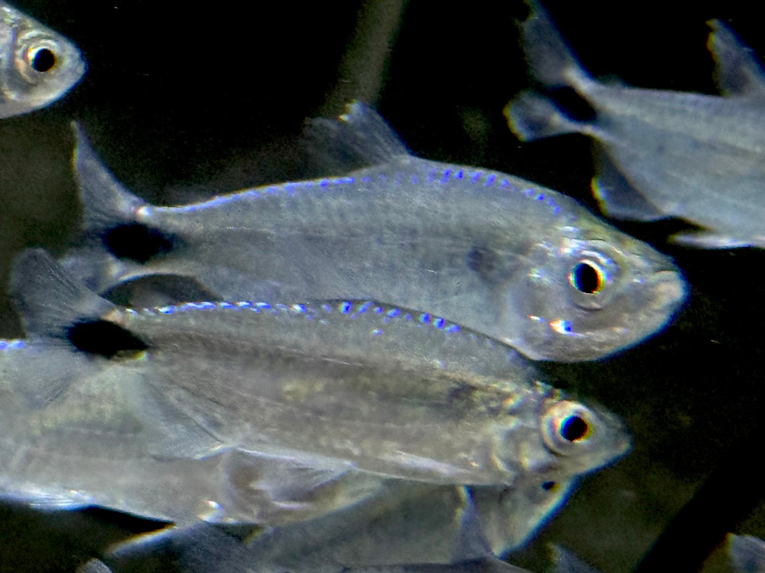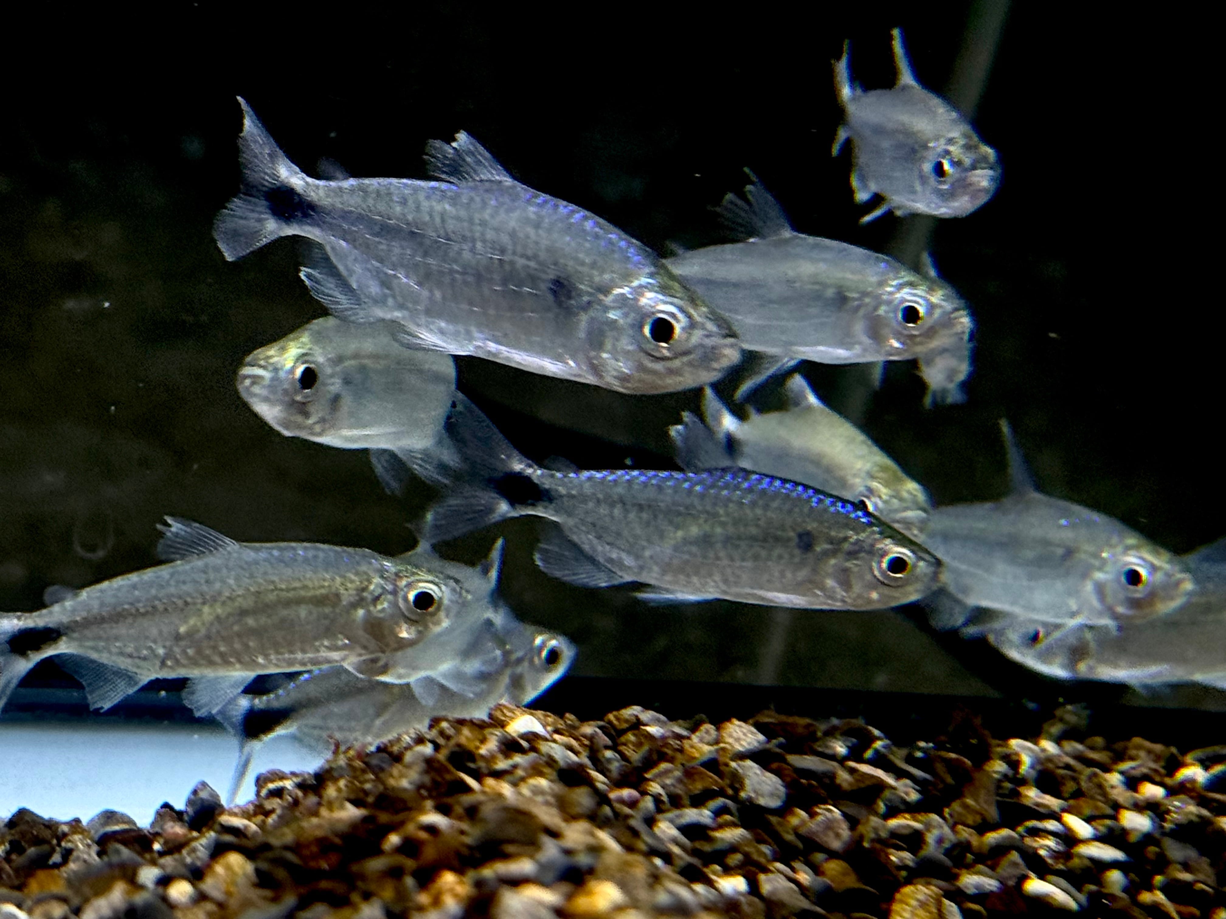 ⬛︎特徴:コンゴ原産の美しいテトラ。光の反射で背中が青い光沢、胴体は銀色の光沢がきらきらと輝きます。