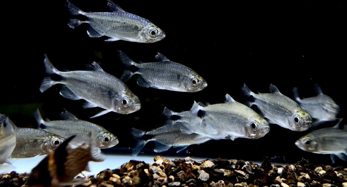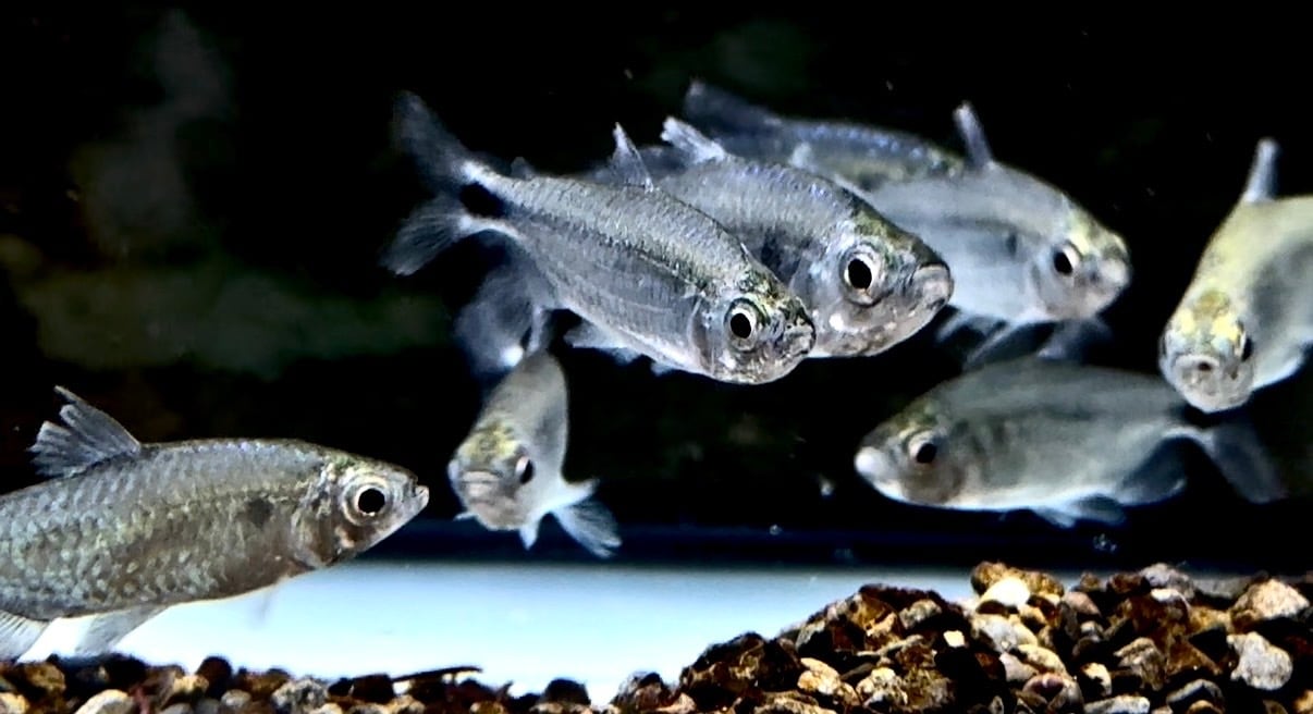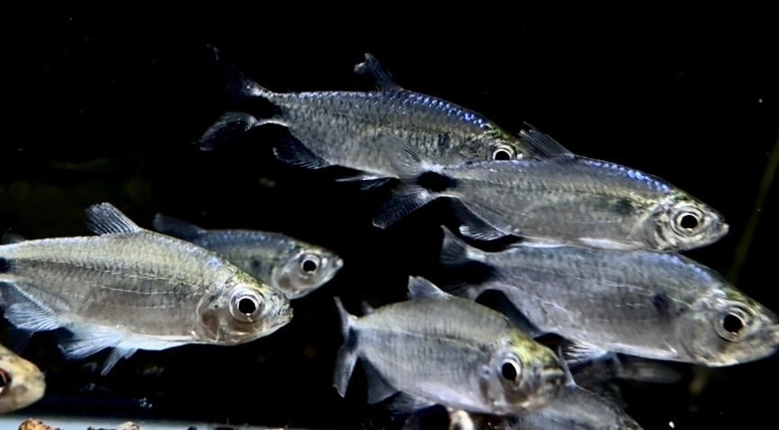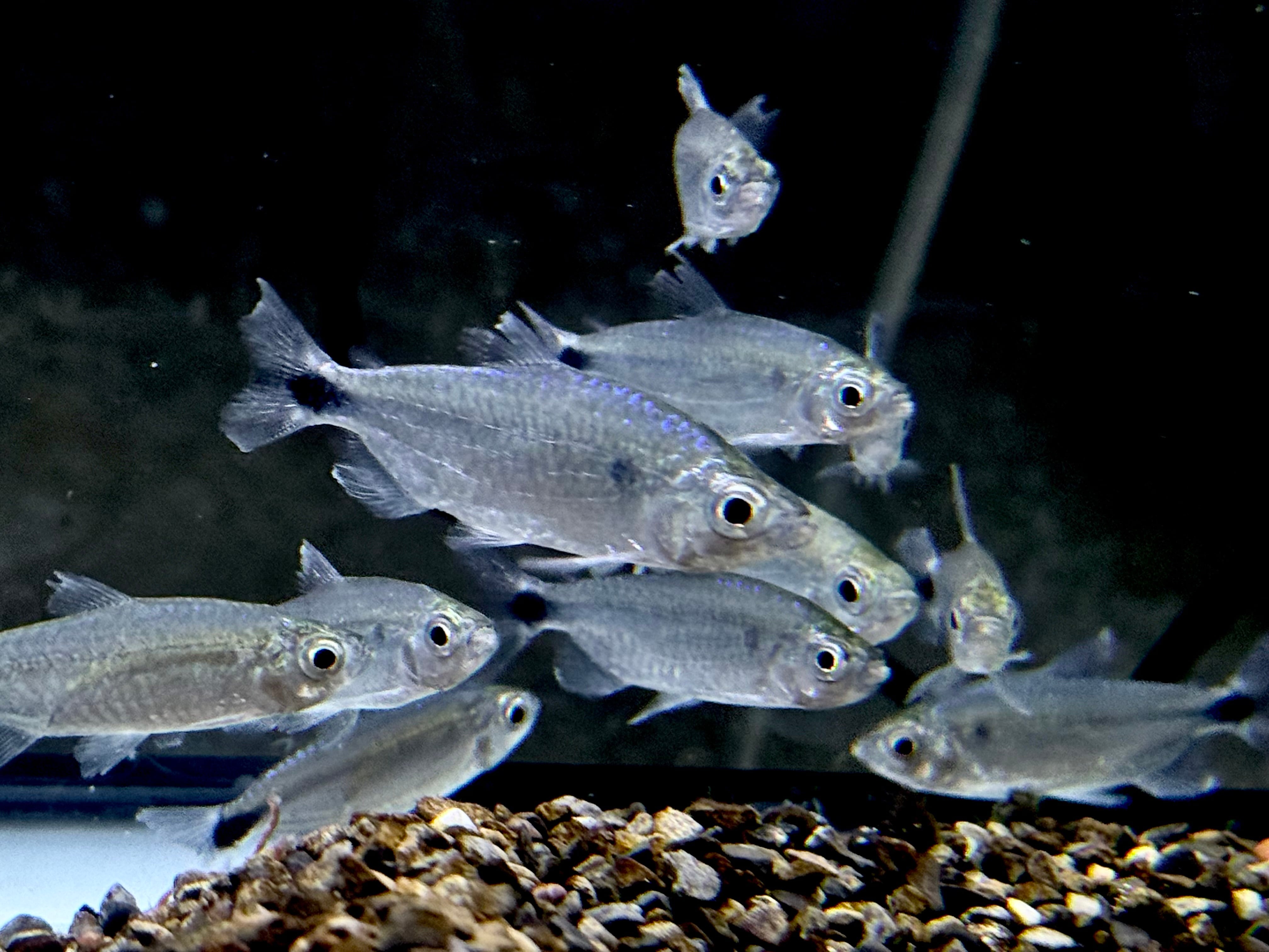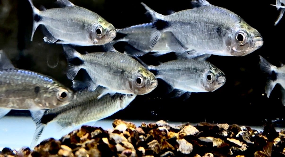 ⬛︎特徴:コンゴ原産の美しいテトラ。光の反射で背中が青い光沢、胴体は銀色の光沢がきらきらと輝きます。