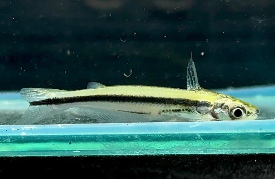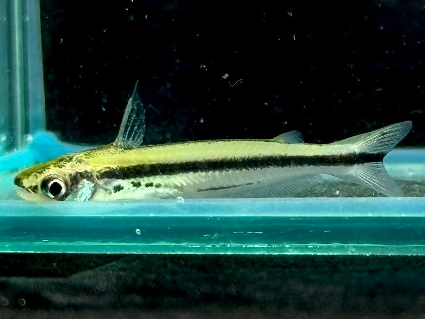 ⬛︎特徴: グラスキャットと呼ばれる種の中でも本種は、透明な体ではなく白濁しています。黒のストライプと半透明の体が非常に美しく、この仲間では観賞価値も高いです