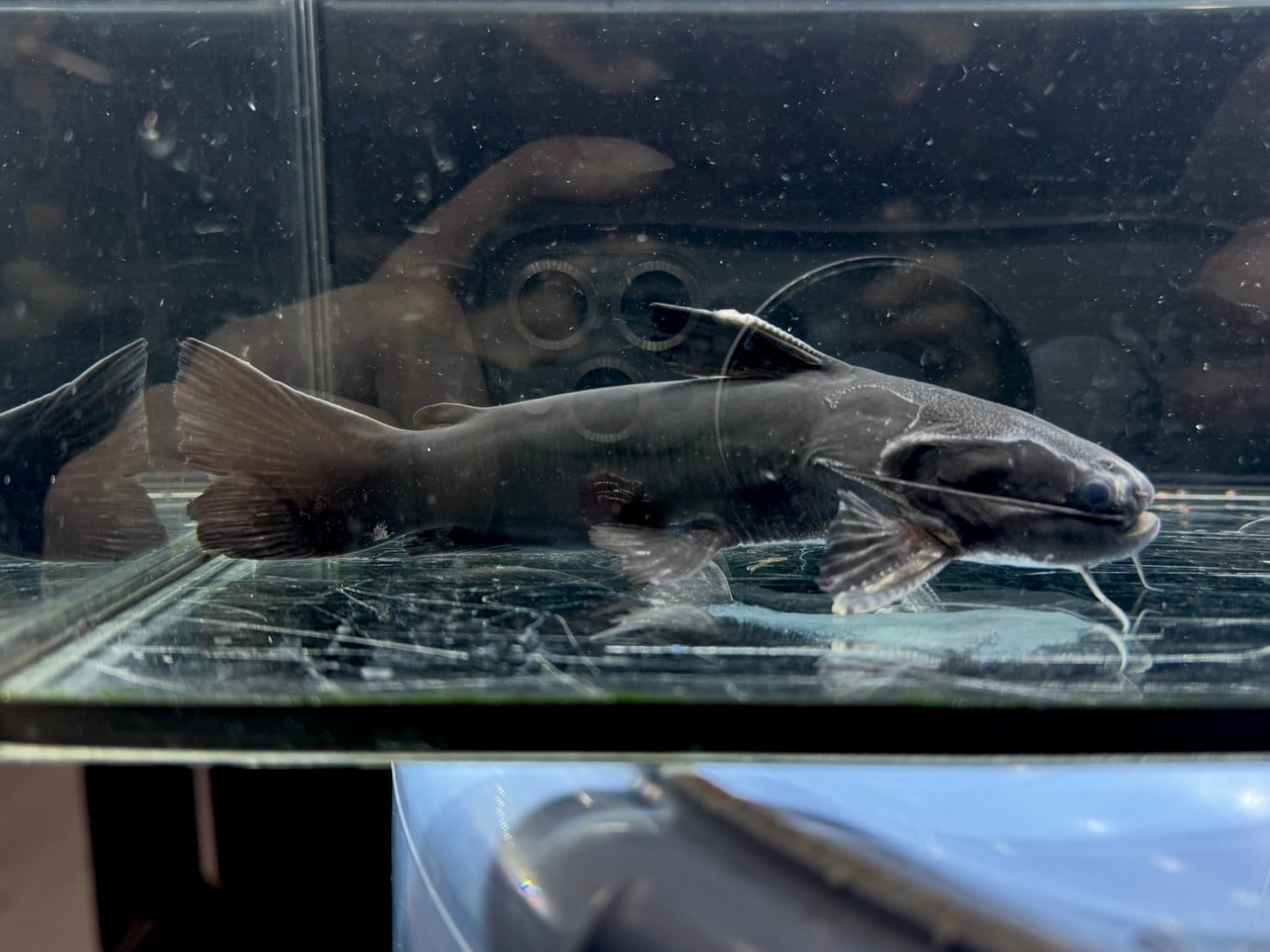 ⬛︎特徴: 体色はこの通り、黒褐色。大きな口が特徴的な南米ナマズ。〝ドカンマウス〟というだけあります。