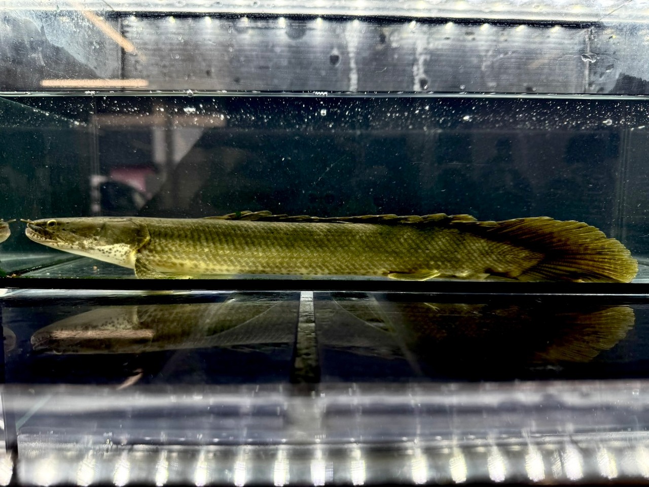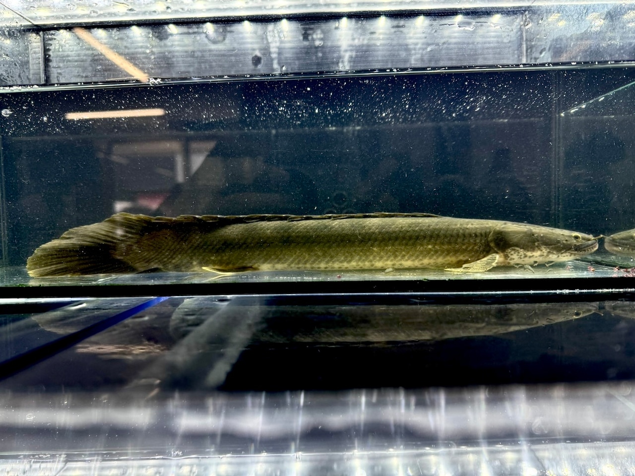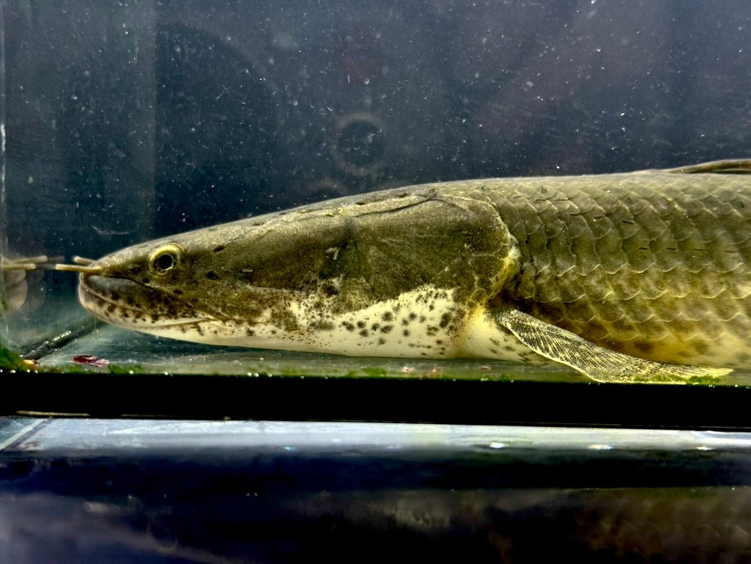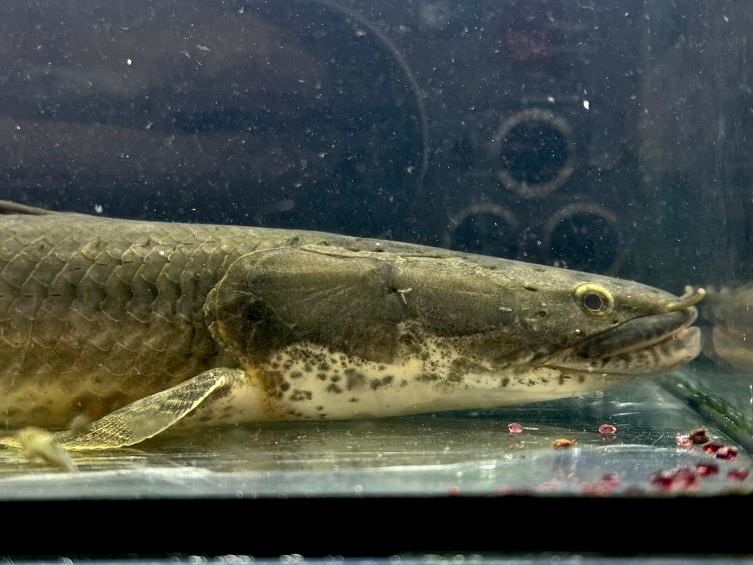 ⬛︎特徴: ⬛︎特徴: ポリプテルスは「多くの(Poly)ひれ(pterus)」という意味で、名のとおり背中に小離鰭(しょうりき)と呼ばれる菱形の背びれが10枚前後ある。これは、尾びれに当たる位置にまで並び、尾びれに該当する鰭はない。種類によって枚数異なる(ビキールは14~18枚並ぶのが特徴)またガノイン鱗や鼻管などもこの種の特徴。鰓呼吸と並行して空気呼吸をする。