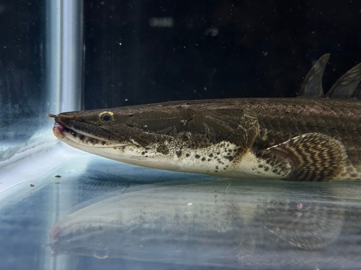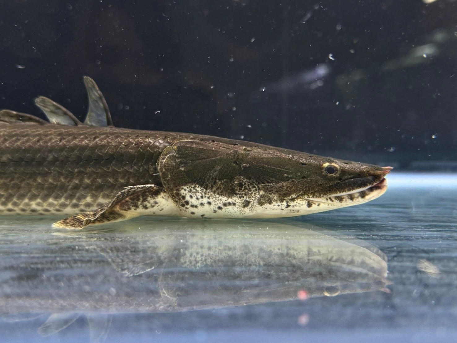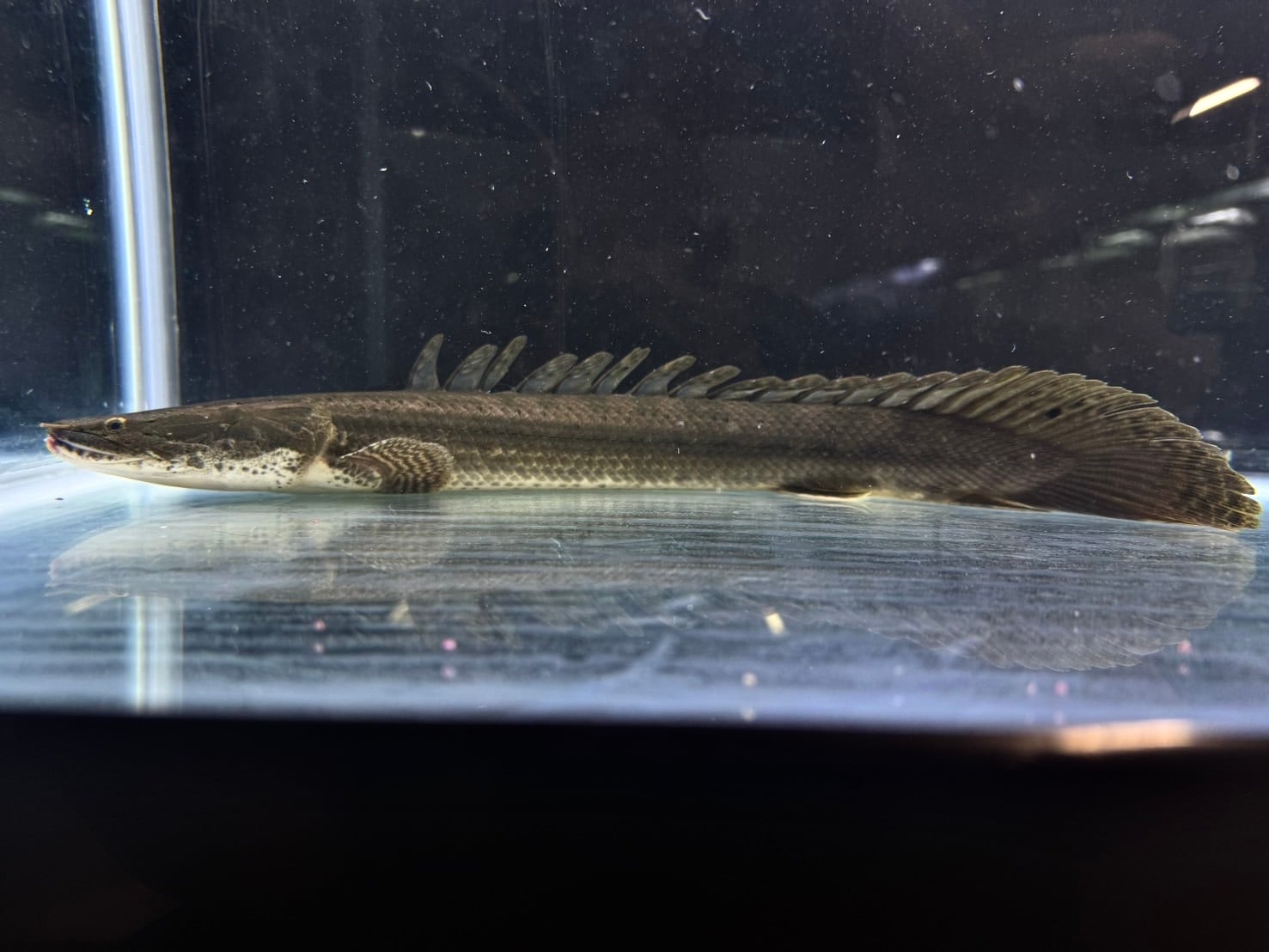 ⬛︎特徴: ⬛︎特徴: ポリプテルスは「多くの(Poly)ひれ(pterus)」という意味で、名のとおり背中に小離鰭(しょうりき)と呼ばれる菱形の背びれが10枚前後ある。これは、尾びれに当たる位置にまで並び、尾びれに該当する鰭はない。種類によって枚数異なる(ビキールは14~18枚並ぶのが特徴)またガノイン鱗や鼻管などもこの種の特徴。鰓呼吸と並行して空気呼吸をする。